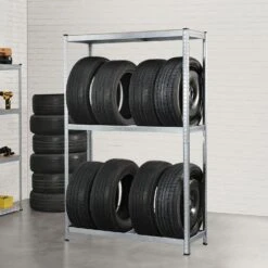 Juskys Metall Reifenregal Drive 8 Reifen Max. 600 Kg – Reifenständer 180 X 117 X 40 Cm