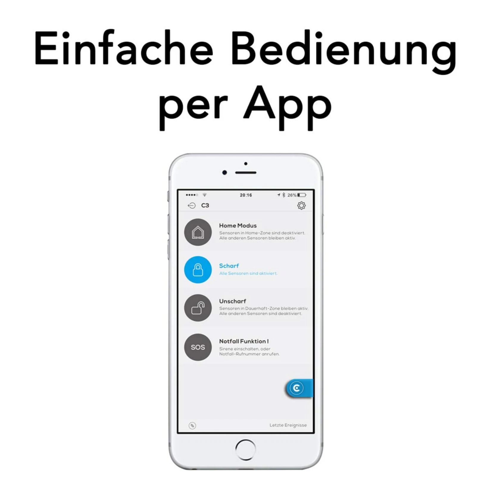 Mit der kostenlosen App „clarer Pro“, verfügbar im App Store und im Google Play Store, können Sie sich überall und jederzeit mit Ihrem Alarmsystem verbinden und Einstellungen vornehmen. Bei Alarm und/oder Systemänderungen werden Sie jederzeit über die App mit einer PUSH Benachrichtigung informiert. Einstellbare Benutzerrechte sorgen dafür, dass Sie jederzeit die volle Kontrolle der Anlage haben.