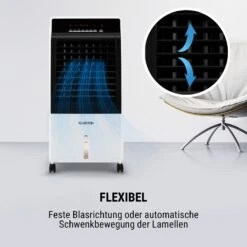 Kühle Brise: Luftkühler mit 7 Liter Tank und zwei Kühlakkus zur energiesparenden Kühlung des Luftstroms.