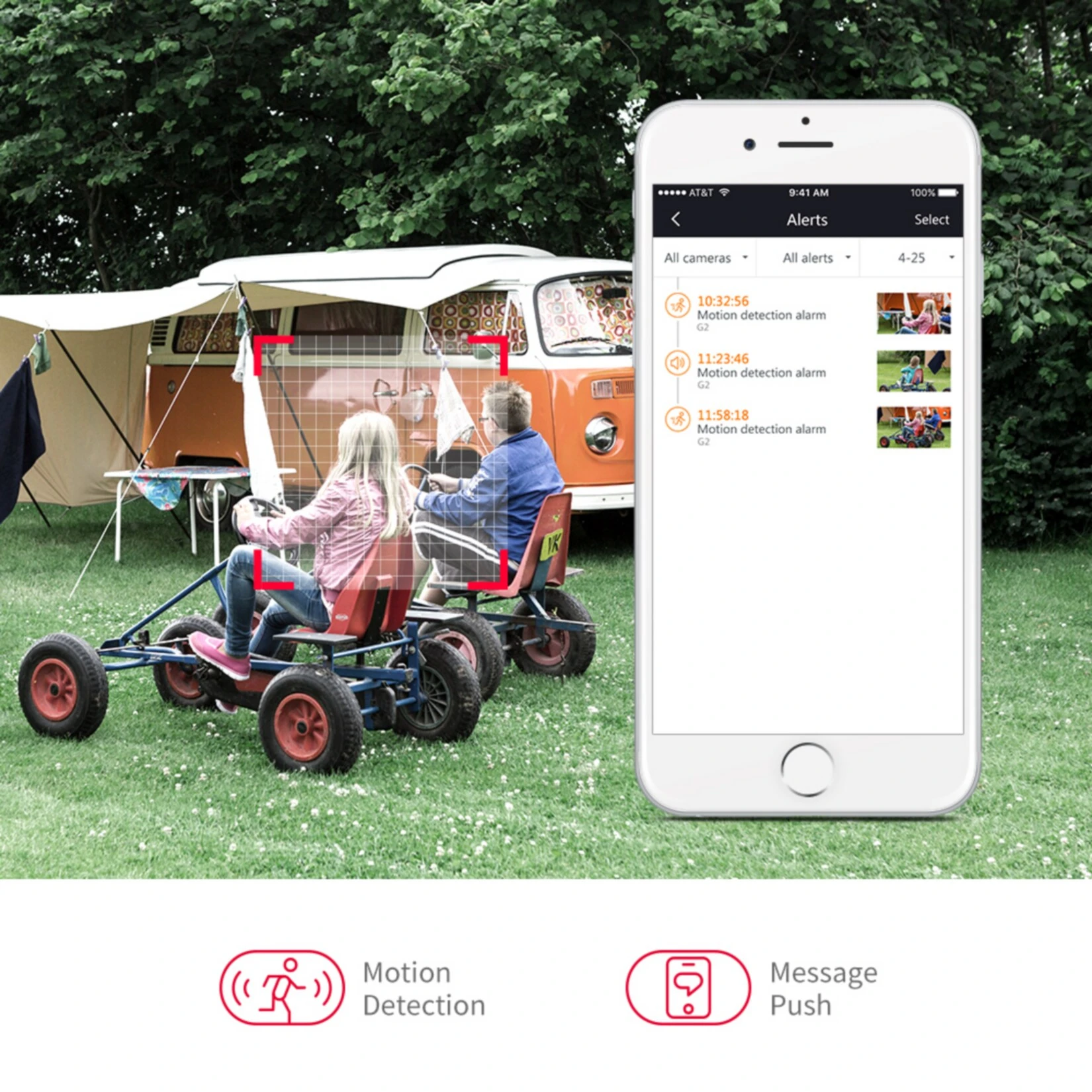 Benachrichtigungen bei Bewegungserkennung. Unterstützung von Audioübertragung, Push-Nachrichten, Dual-Stream sind nur einige von vielen nützlichen Funktionen, welche Ihnen bei diesem Modell zur Verfügung stehen.