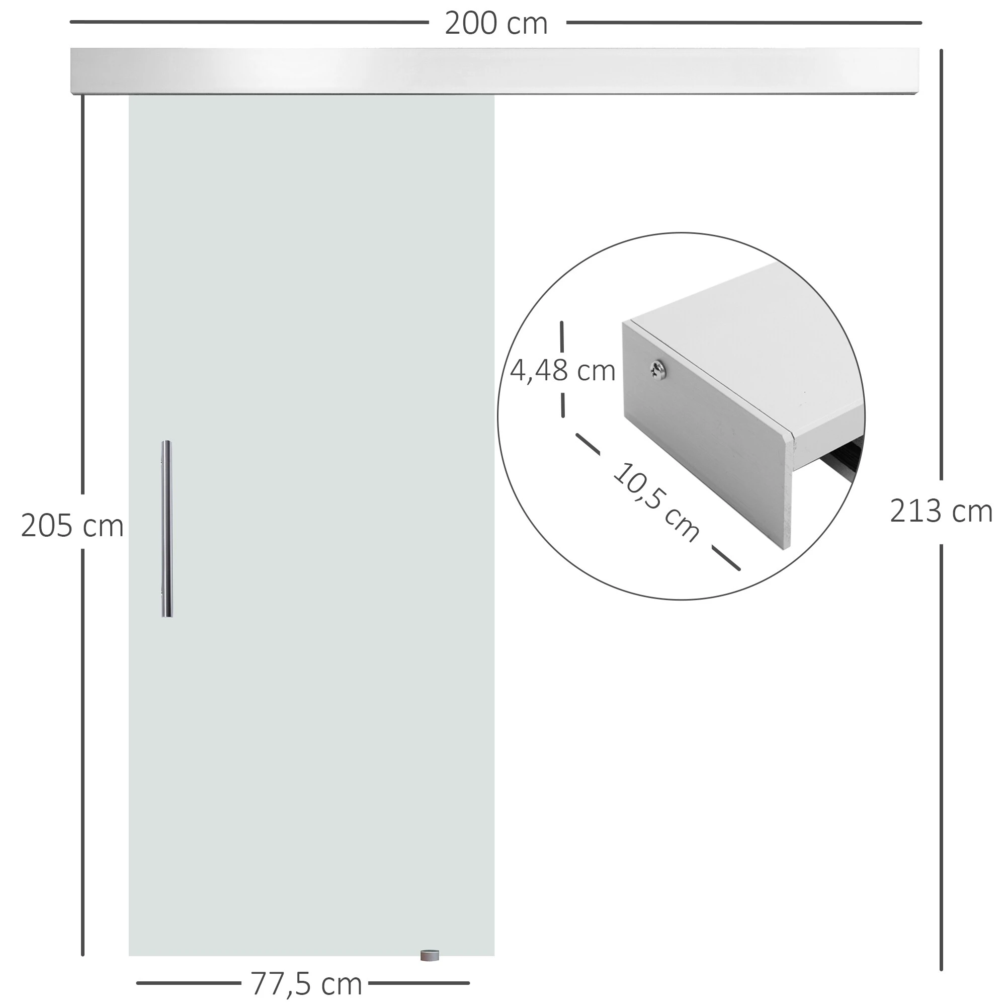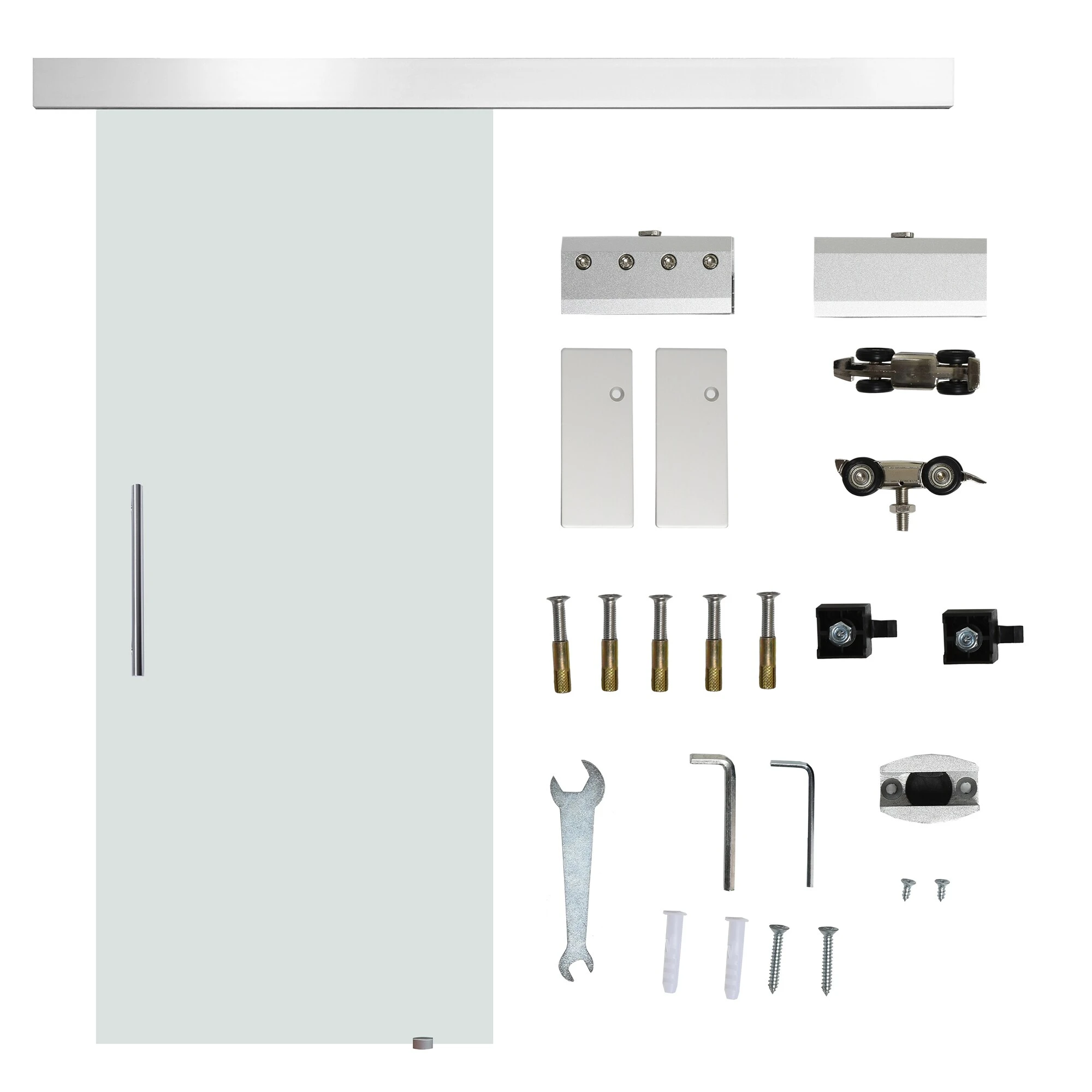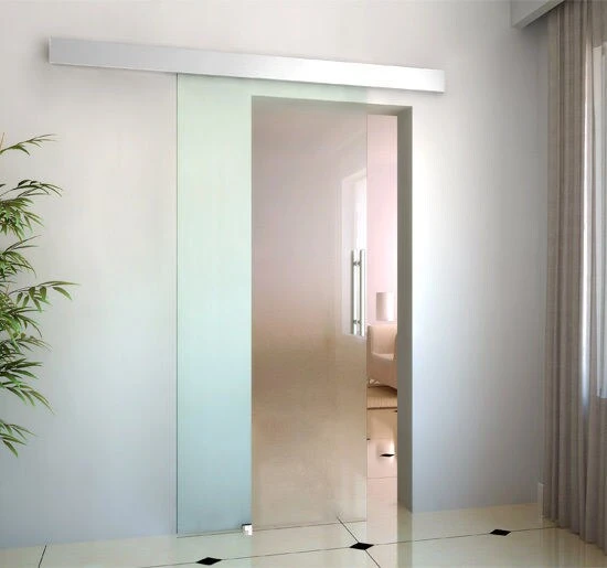 Entdecken Sie Ihr Zuhause neu. Ob als Raumteiler, Eingangstür oder moderne Bürotür. Die Einsatzmöglichkeiten sind vielfältig. Die Ganzglasscheibe ist satiniert,blickdicht und lichtdurchlässig. Befestigt wird Sie am Aluminium Hängesystem. Dadurch läuft Sie flüsterleise und ruhig – ganz ohne zusätzliche Bodenführung. Die Scheibe selbst besteht aus 8mm starkem ESG und ist besonders robust. Die Tür kommt im Komplettset, sodass selbst ohne handwerkliche Erfahrung ein einfacher Aufbau möglich ist.
