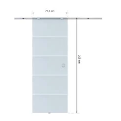 Entdecken Sie Ihr Zuhause neu. Ob als Raumteiler, Eingangstür oder moderne Bürotür. Die Einsatzmöglichkeiten sind vielfältig. Die Ganzglasscheibe ist teilsatiniert und lichtdurchlässig. Befestigt wird Sie am Aluminium Hängesystem. Dadurch läuft Sie flüsterleise und ruhig – ganz ohne zusätzliche Bodenführung. Die Scheibe selbst besteht aus 8mm starkem ESG und ist besonders robust. Die Tür kommt im Komplettset, sodass selbst ohne handwerkliche Erfahrung ein einfacher Aufbau möglich ist.