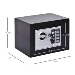 - Lieferumfang: 1 x Tresor, 4 x AA-Batterien, 1 x Samtpad, 2 x Luxus-Notschlüssel
