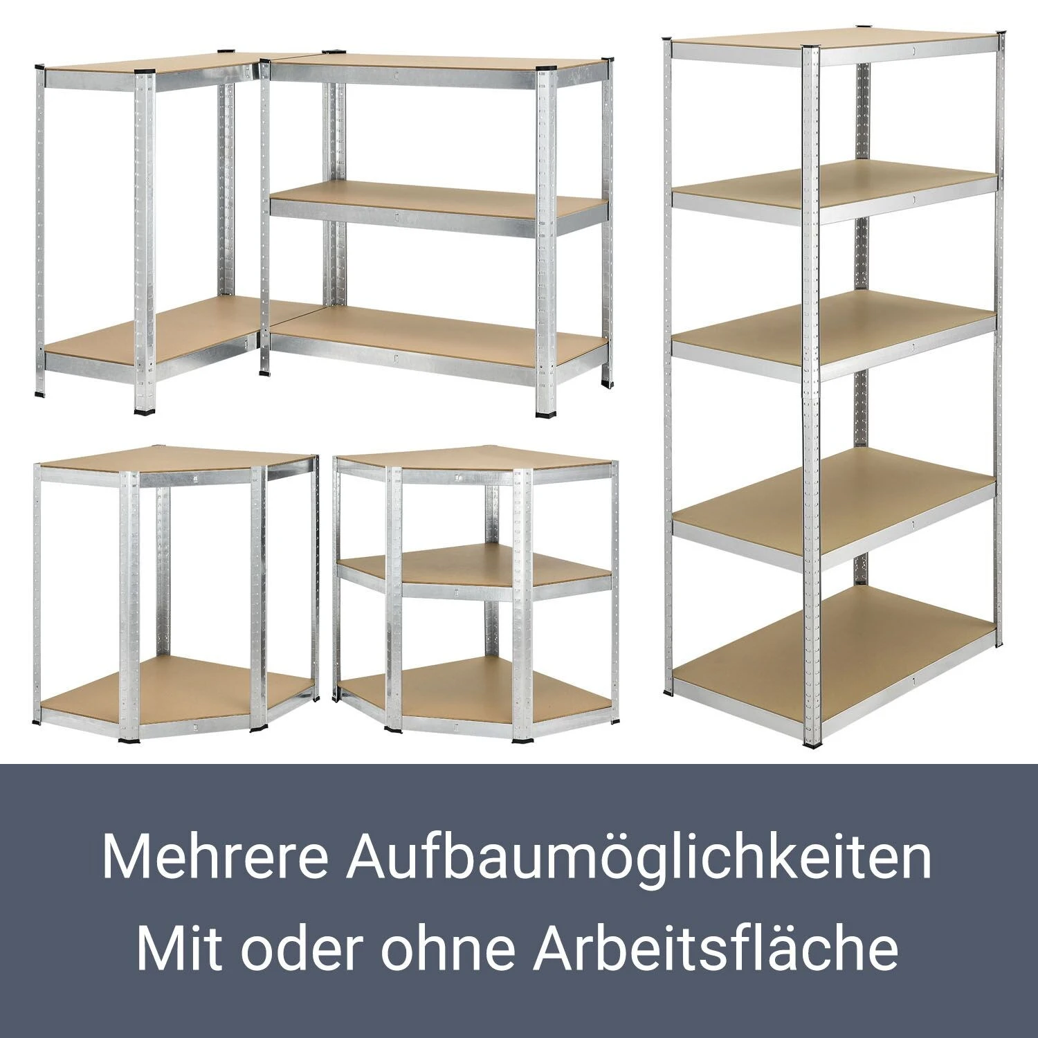 Die Metallregale lassen sich durch die zweiteiligen Streben auch in Form von halbhohen Regalen oder als Werkbank aufbauen. Die ideale Lösung, wenn Sie Teile des Schwerlastregals unterhalb einer Treppe oder unter einer DachschrÀge aufstellen möchten.