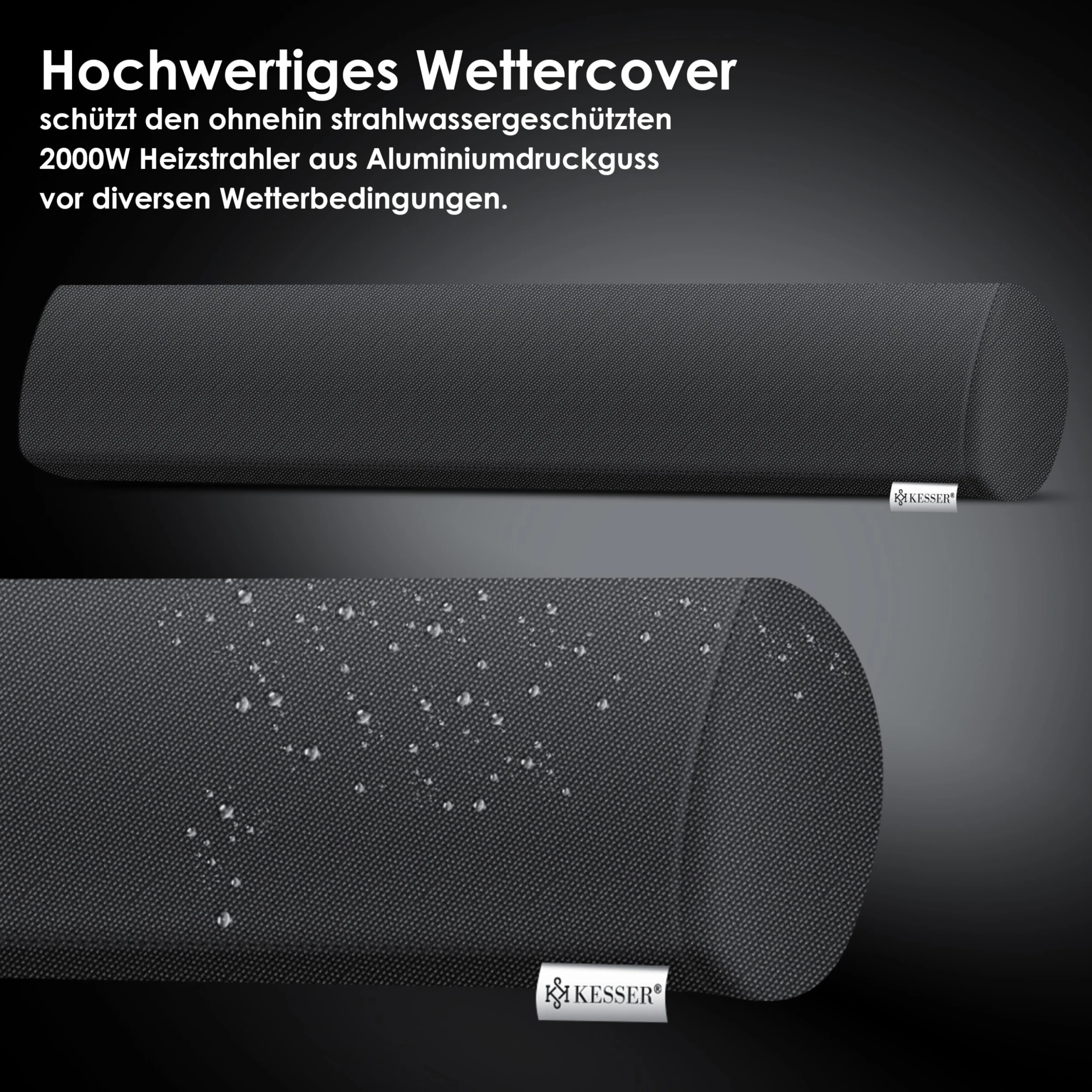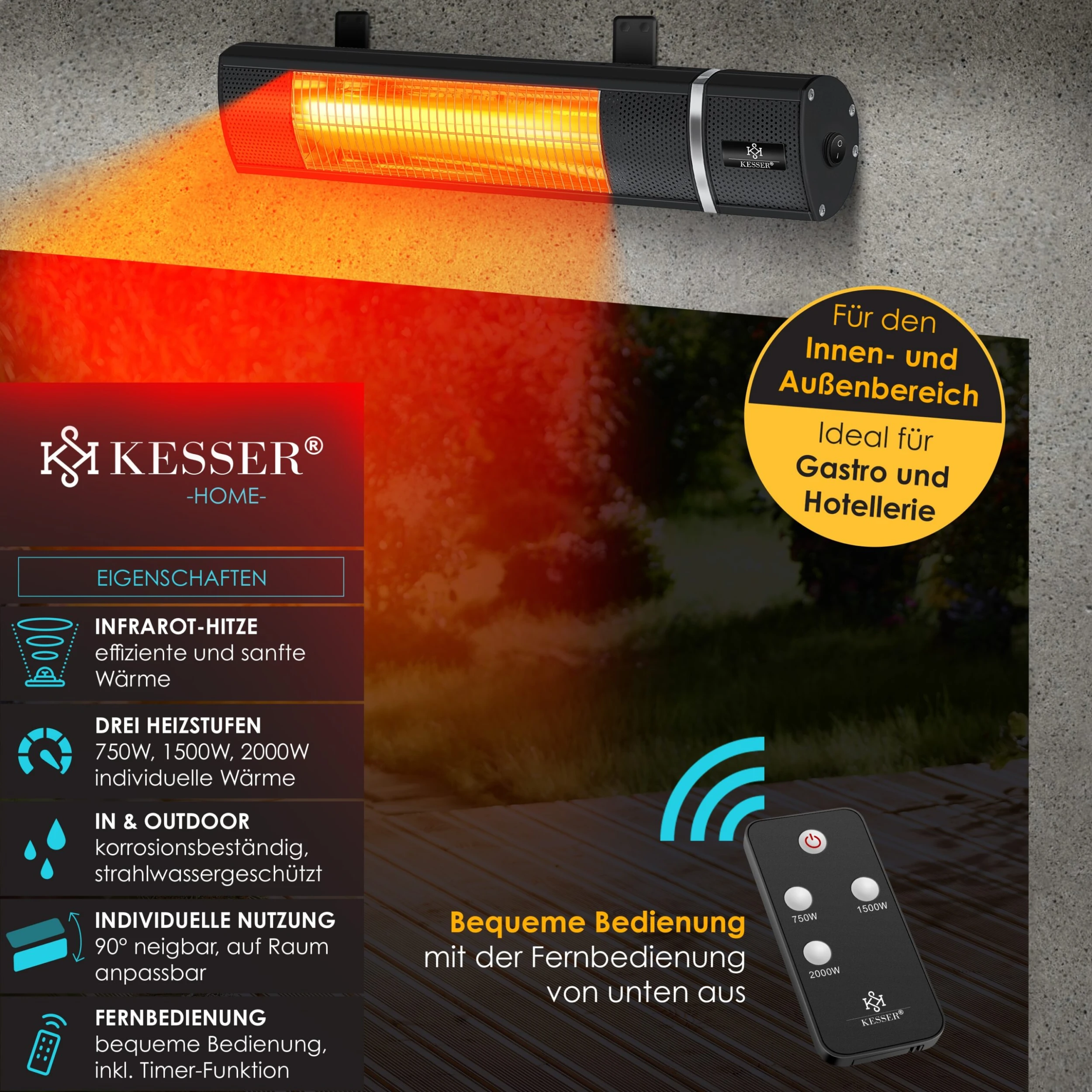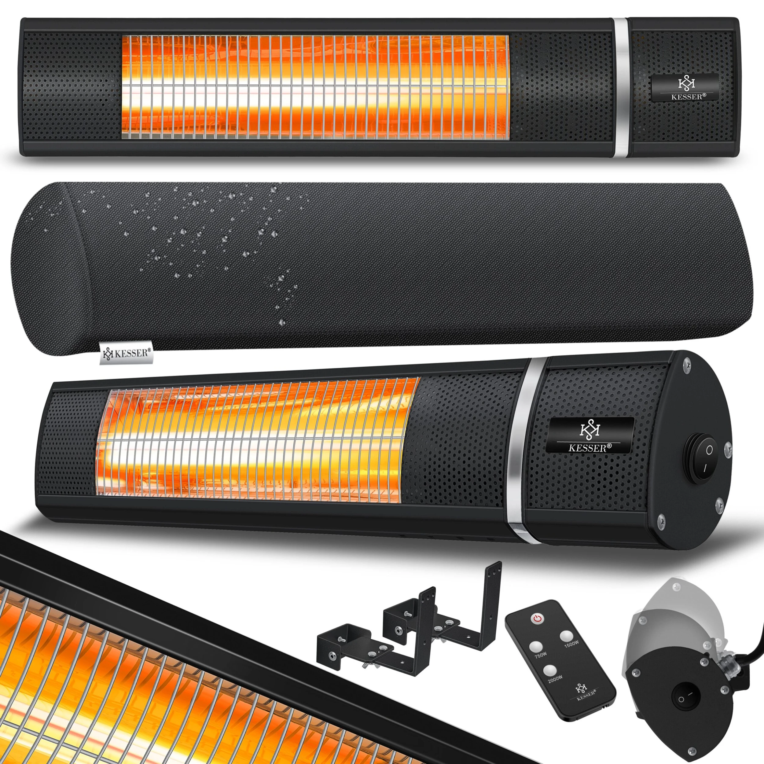 KESSER Infrarot-Heizstrahler robust und hochwertig, per Fernbedienung steuerbar, für Indoor und Outdoor inkl. Schutzgitter und Wettercover sowie drei Heizstufen von 750W über 1500W bis hin zu 2000W
