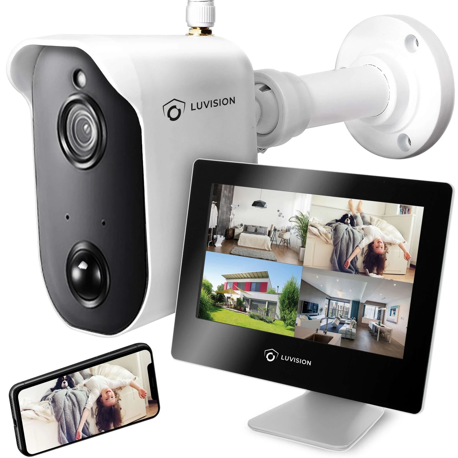 Ein kabelloses Akku Funk-Überwachungssystem mit Monitor zur Video-Überwachung Ihres Hauses, Grundstücks oder Betriebes ist schon etwas Tolles, weil Sie zwischen Kamera und Empfangsgerät kein Kabel verlegen müssen. Das digitale Funk-Überwachungssystem Set LUVISION LV-A-2020-01 setzt noch einen oben drauf, weil dessen Kameras akkubetrieben sind und deshalb am Überwachungsort auch keine Steckdosen benötigt werden. Sie können jede Kamera flexibel mit einen Solarpanel erweitern.