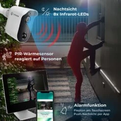 – Um eine lückenlose Überwachung sicherzustellen, empfehlen wir, für jede Kamera einen Ersatz-Akku, den Sie separat laden und bei Bedarf gegen den leeren Akku tauschen.