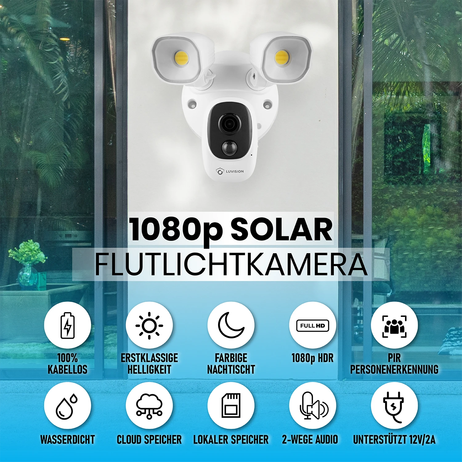 Kabellose WLAN-Solar IP Überwachungskamera mit Flutlicht LED & PIR Bewegungssensor