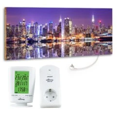 - Marmony 800W Infrarot-Heizung Motiv “Metropole” mit Thermostat MTC-40