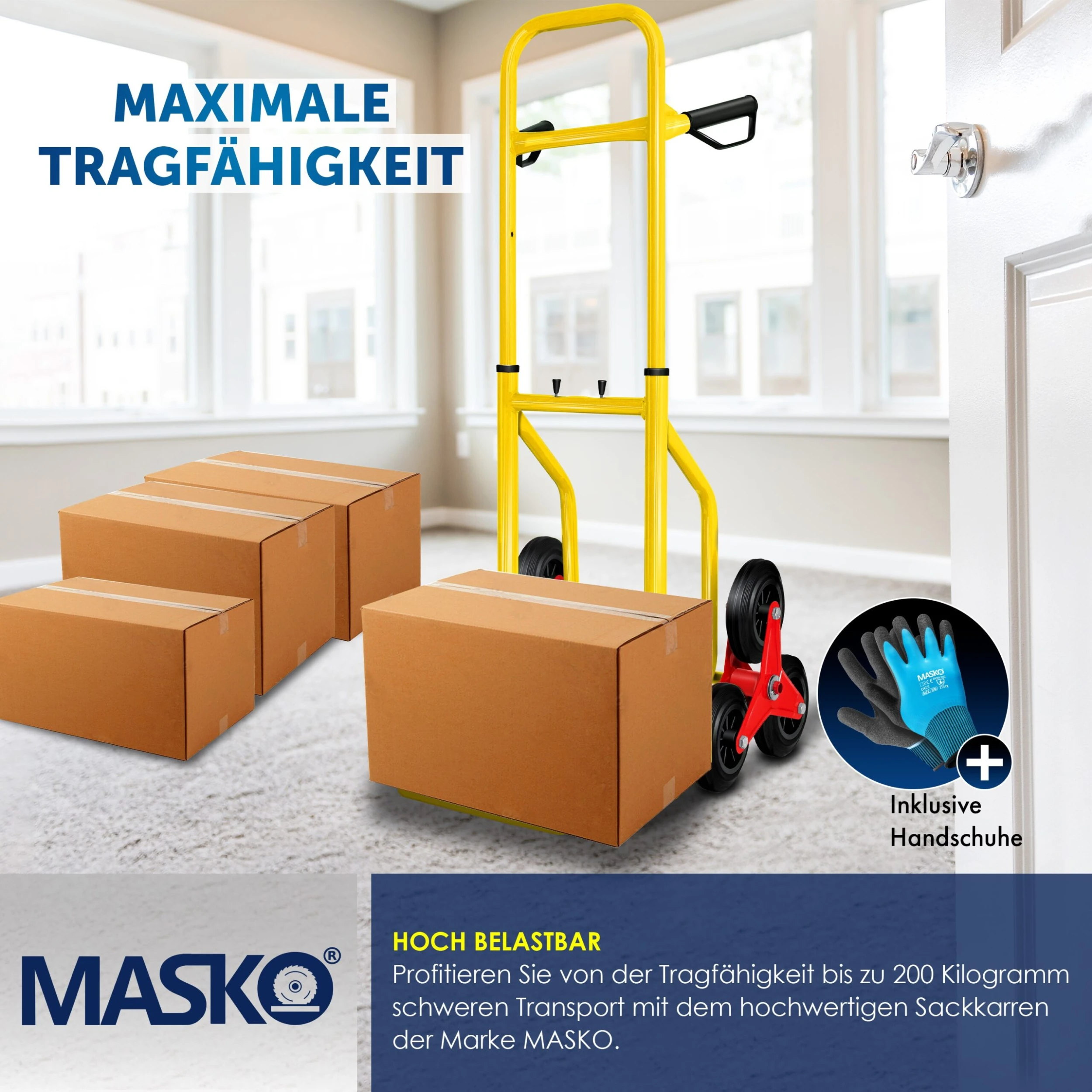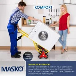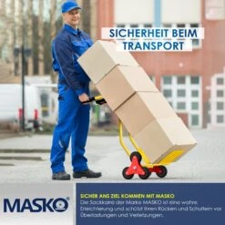 MASKO Treppensackkarre mit Hartgummibereifung für viele Untergründe geeignet, Sicherheitsgriffe aus Kunststoff für einen sicheren Halt, bis 200 Kg belastbar