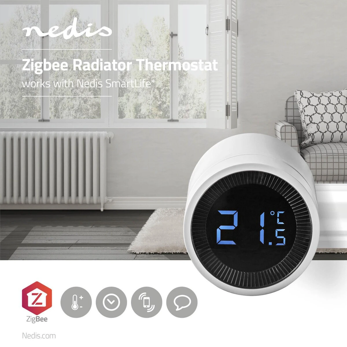 Steuern Sie mehrere Heizkörper auf einmal, sodass Sie nie wieder einen einzigen Raum vergessen. Durch die Kombination dieses Produkts mit anderen Nedis SmartLife-Produkten (wie dem Zigbee-Tür-/Fenstersensor oder -Klimasensor) können Sie genauere und energieeffizientere Systeme einrichten.
