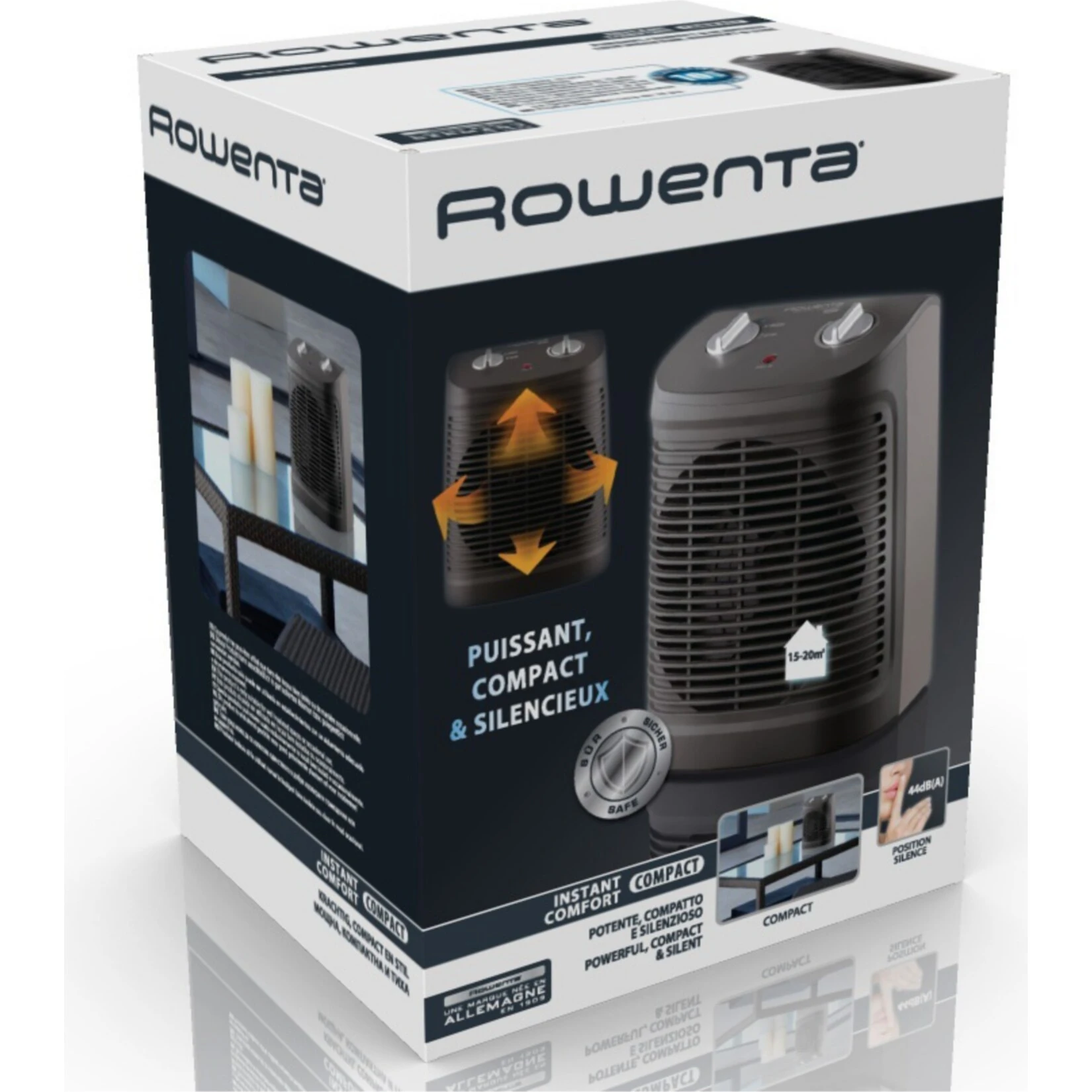 Der Rowenta Heizlüfter Instant Comfort Compact SO2320 ist kompakt, leistungsstark und dennoch leise. Die 1.000 Watt-Stufe ist dabei besonders sanft. Bei der 2.000 Watt-Stufe kommt dann die volle Leistung des Heizlüfter SO2320 zur Geltung. Das integrierte Thermostat lässt sich je nach den individuellen Bedürfnissen regeln. Des Weiteren verfügt der Heizlüfter SO2320 über eine Kühlstufe für die wärmeren Tage.