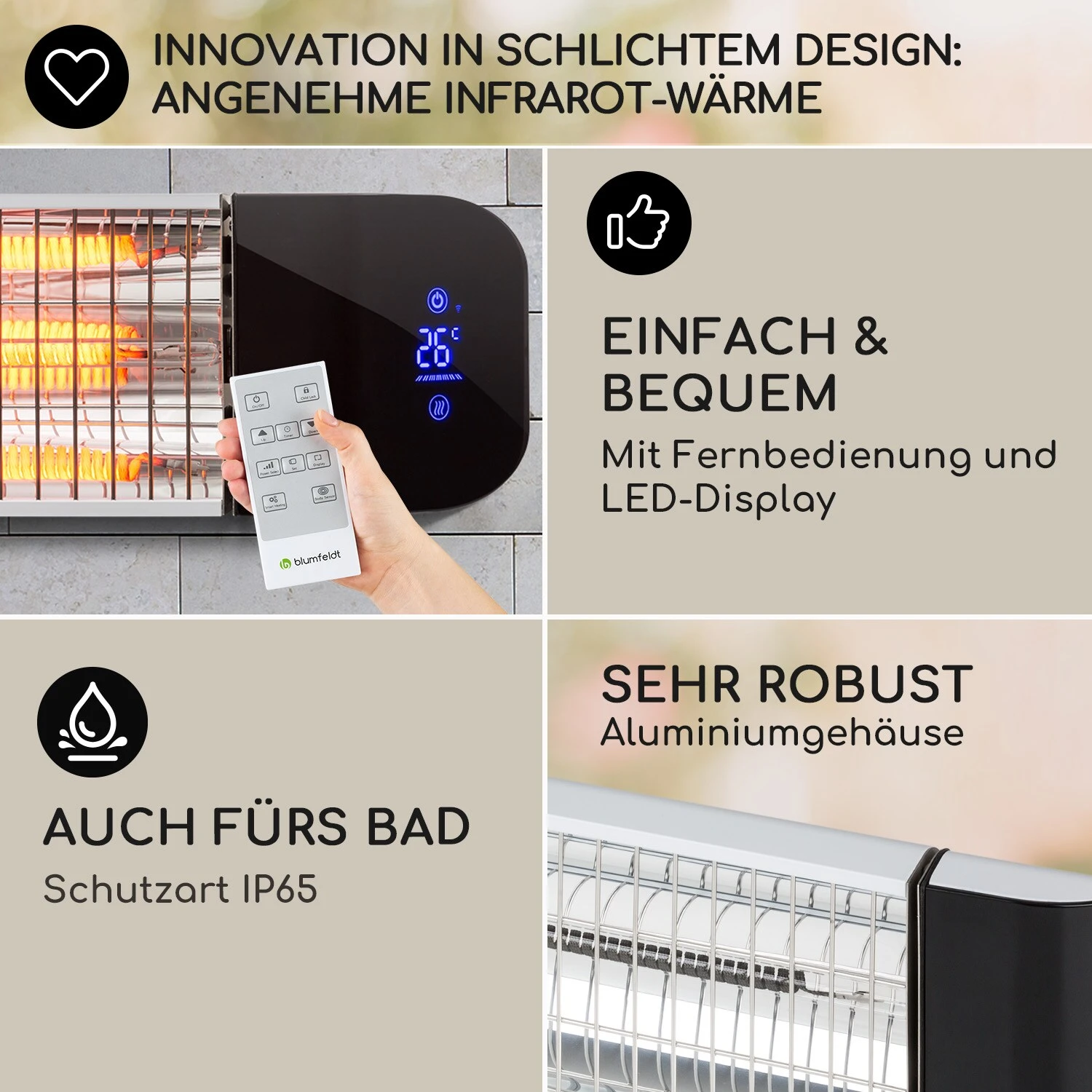 - Carbon Heizelement: praktischer & effizienter Infrarot-Heizstrahler mit IR ComfortHeat-Technologie fĂĽr bis zu 2400 W Leistung