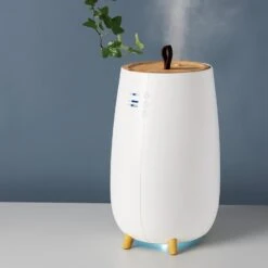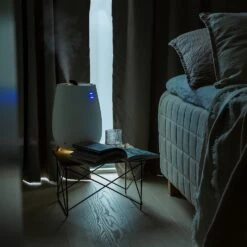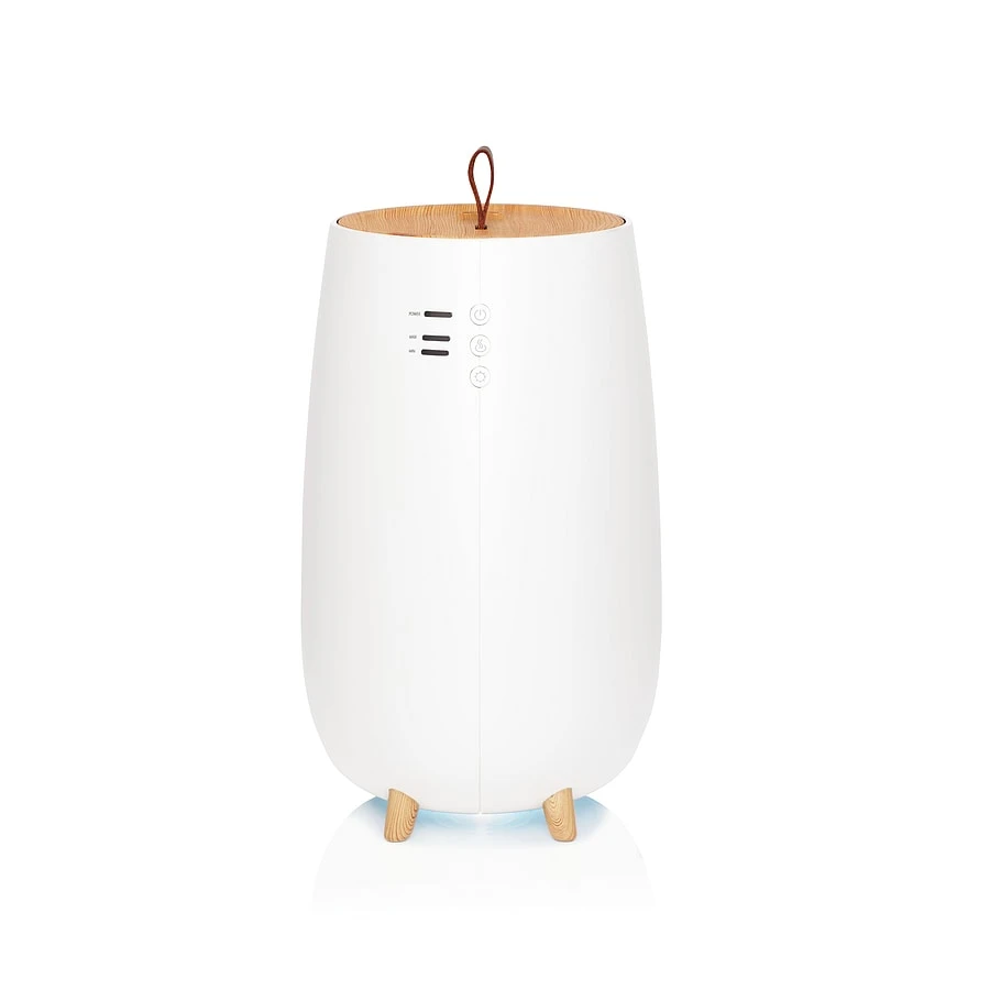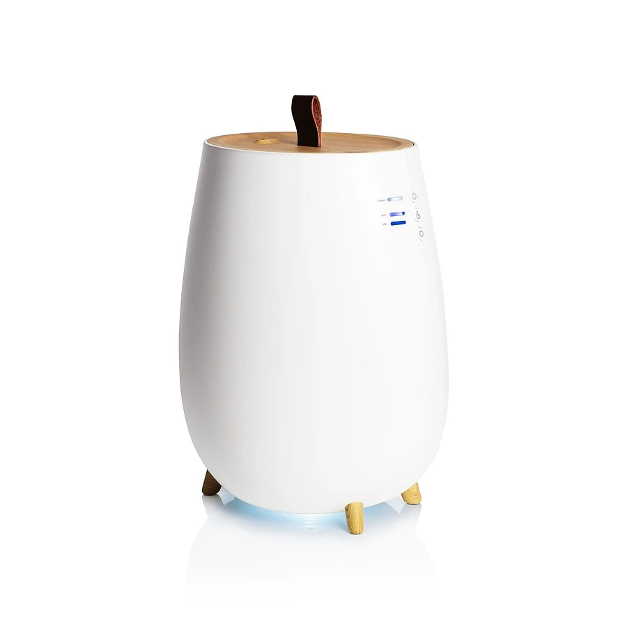 Der Wilfa Luftbefeuchter bietet eine Ultraschalltechnologie und gute Dampfkapazität. Die Luftbefeuchtung wirkt trockener Haut, krausem Haar, Hals- und Augenschmerzen sowie Rissen in Holzböden und -wänden entgegen. Ein Ultraschall-Luftbefeuchter hat eine kleine Vibrationsplatte verbaut, die das Wasser in winzigen Tropfen abgibt, das dann als kalter Dampf austritt. Da der Dampf selbst kalt ist, wird verhindert, dass er auf kalte Oberflächen wie Fenster oder Wände trifft, wodurch Wasserschäden an diesen vermieden werden. Stattdessen nutzen Sie die volle Kapazität des Geräts zur effektiven Befeuchtung der Luft. Aufgrund der kalten Dampfabgabe ist der Luftbefeuchter auch für Kinder sicher und verbraucht sehr wenig Energie. Zudem ist der Wartungsumfang eines Ultraschall-Luftbefeuchters sehr gering. Der Luftbefeuchter gibt 230 ml Dampf pro Stunde ab und eignet sich für Räume bis zu 20 qm. Dank seines Wassertanks mit einem Fassungsvermögen von 2,3 Litern kann er 10 Stunden lang ununterbrochen benutzt werden. Der Wassertank kann von oben befüllt werden, sodass Sie ihn zum Befüllen nicht auf den Kopf stellen müssen. Die Anzeige leuchtet auf, wenn der Wassertank leer ist, um Sie daran zu erinnern, Wasser einzufüllen. Der Luftbefeuchter hat keine störenden Ventilatoren und ist sehr leise im Gebrauch. Er ist somit auch für Schlafzimmer gut geeignet. Der Wilfa MOIST S ist sehr elegant designt und verfügt über abnehmbare Teile für eine einfache Reinigung.