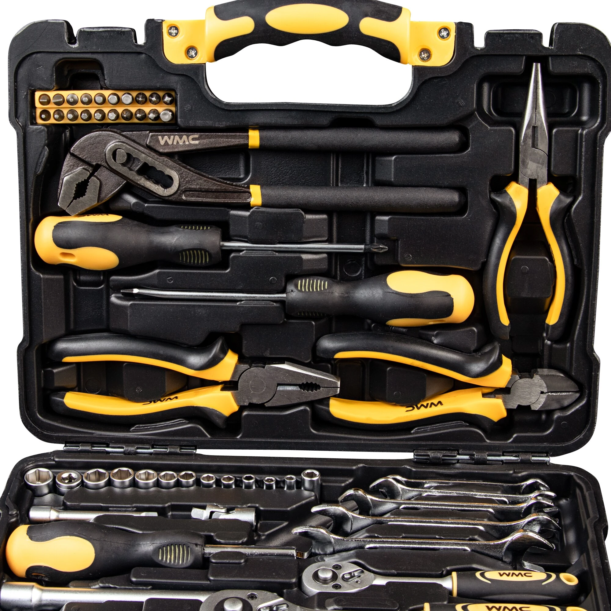 Der umfangreiche WMC Tools Werkzeugsatz mit 65 Einzelteilen ist ein perfektes Basis-Werkzeugset für den Heimwerker und eignet sich für alle anfallenden Werkarbeiten und Reparaturen rund um Haus, Garage oder Werkstatt. Untergebracht in einem stabilen Hartschalenkoffer, sind die Werkzeuge schnell zur Hand und lassen sich problemlos mitnehmen.