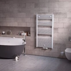 XIMAX Badheizkörper Alpha in gerader Ausführung und einem 50 mm Mittenanschluss.