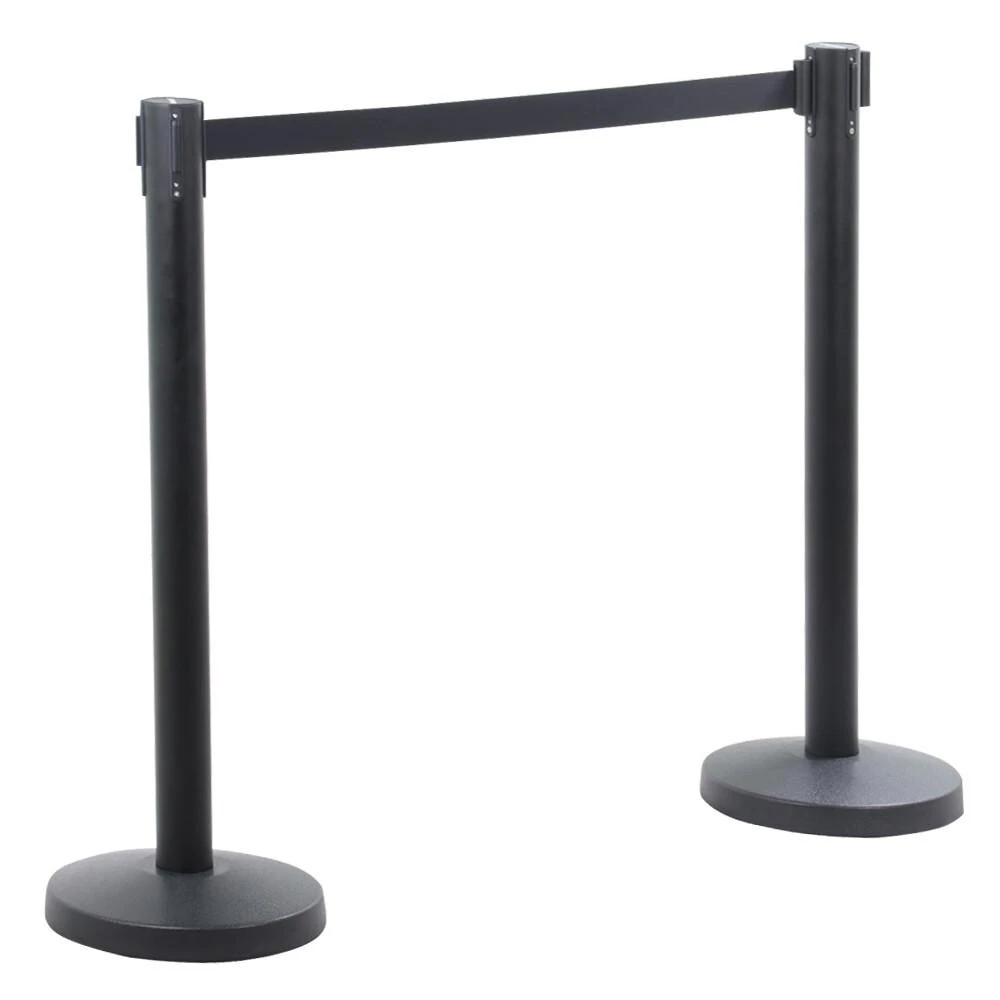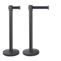 - Absperrband in Schwarz – Band in 200 cm Länge und 5 cm Breite, Absperrpfosten in 92 cm Höhe, Standfuß in Dia. 31,5 cm.